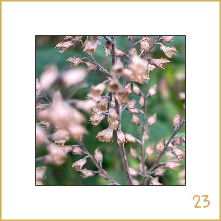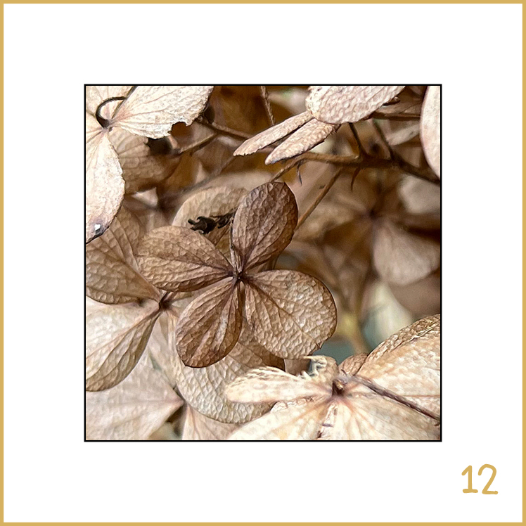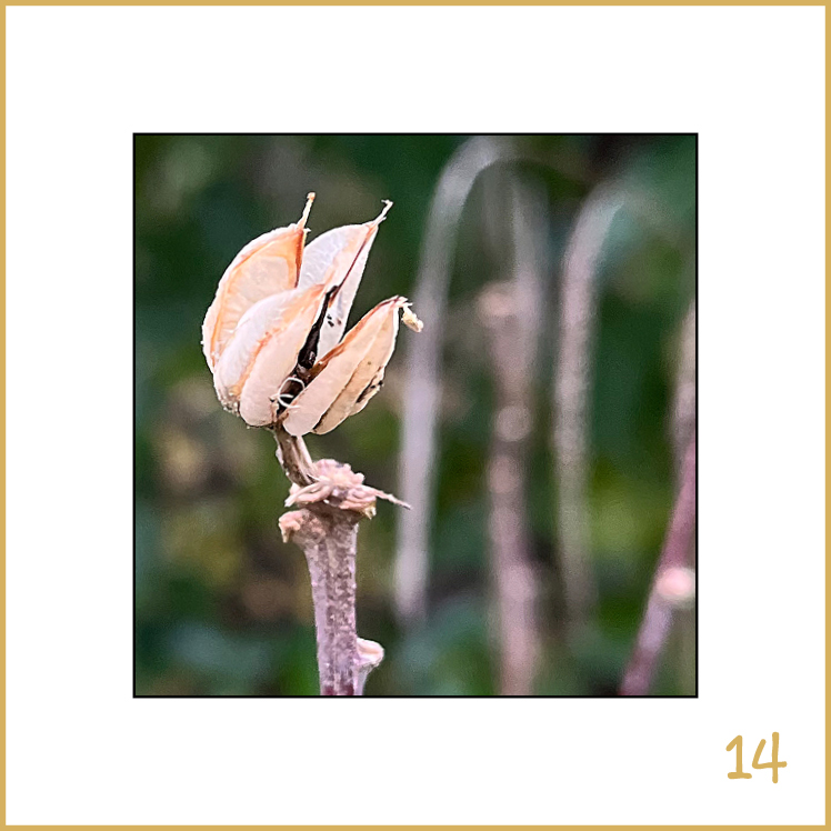 Die fotografischen Inspirationen aus unserem Garten mit lyrischen Texten zu kombinieren war für mich Neuland. Es bedeutete, die Pflanzen noch genauer und bis ins kleinste Detail zu betrachten. Versteckt sich da vielleicht eine kleine Geschichte oder möchte ich diese Pflanze einfach in ihrer Schönheit beschreiben? Was dabei herausgekommen ist, sind 24 kurze Achtzeiler, die die jeweiligen Besonderheiten hervorheben, eine kleine Story über den Hauptakteur erzählen oder einfach nur zum Schmunzeln anregen.