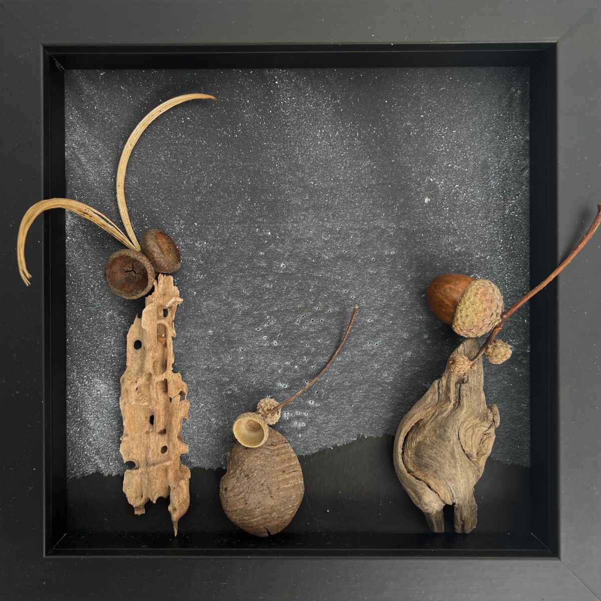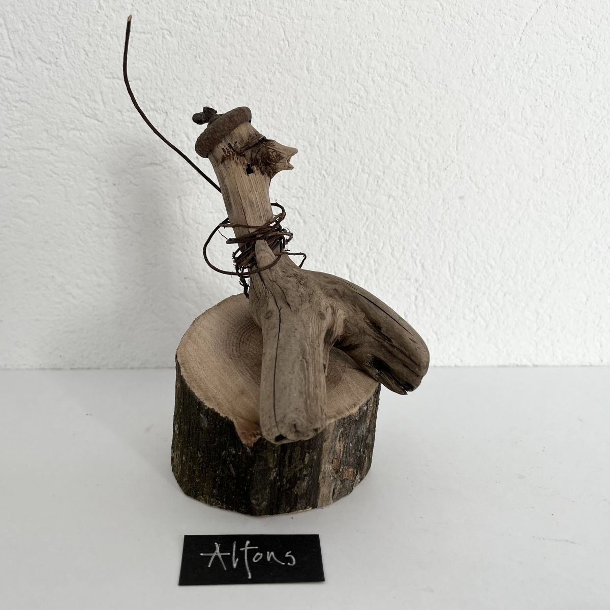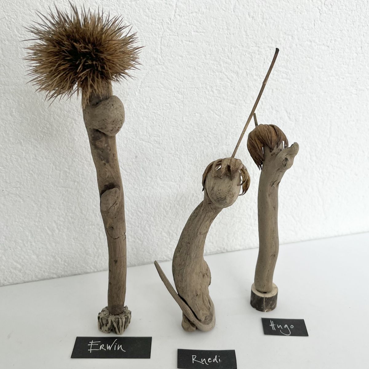 Mein persönliches Sammelsurium an Fundstücken aus der Natur hat in den vergangenen Wochen meine Fantasie heftigst angeregt und etliche solche kleine Figuren entstehen lassen. Ich nenne sie «Fundlinge». Alle haben sie ihren Charakter und erzählen eine Geschichte, ihre Geschichte.