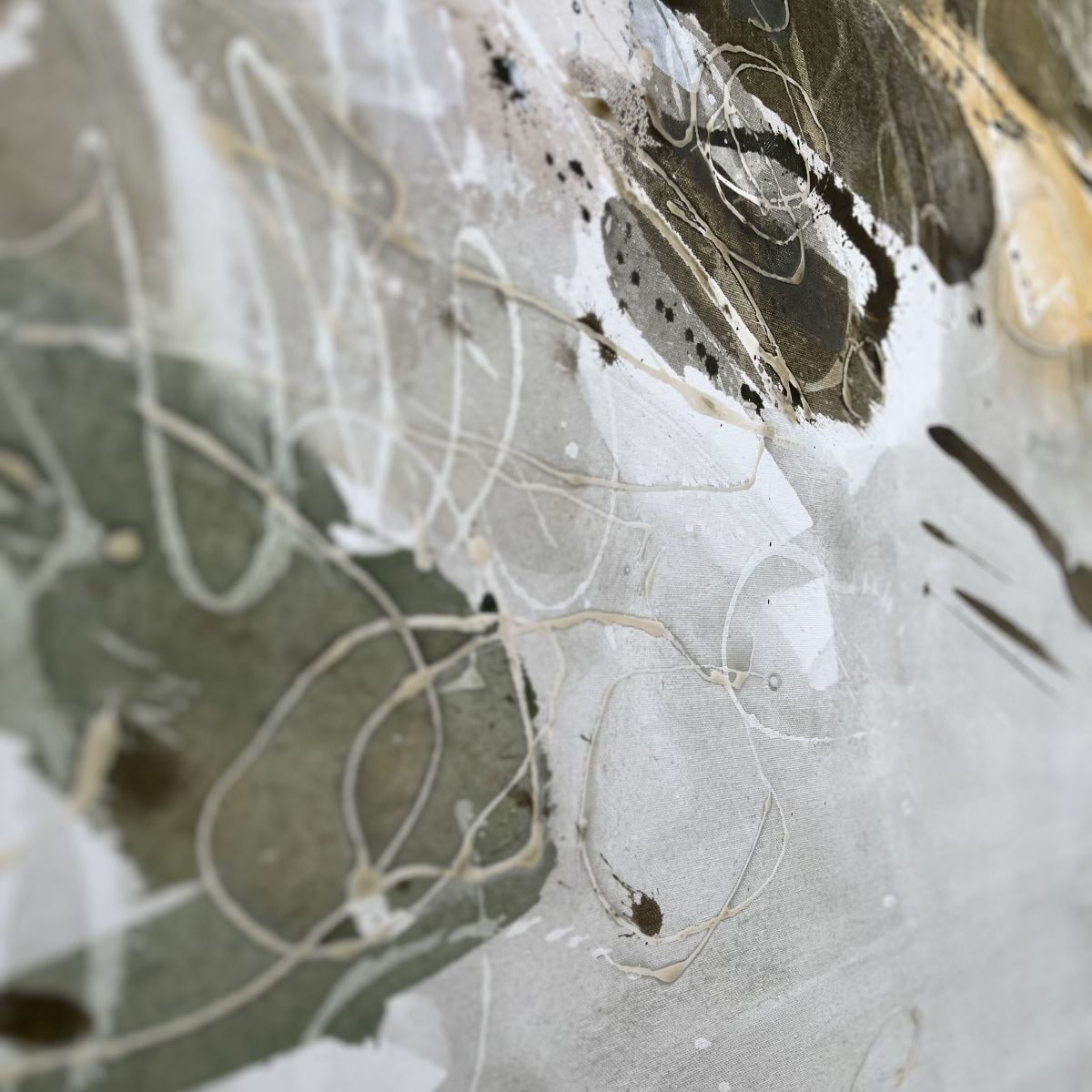 In der abstrakten Malerei ist die gestische Linie, nebst Farbe und Form ein wichtiger Bestandteil der Komposition. Die Gestik fasst Bildbereiche zusammen, ordnet und schafft Tiefe, Strukturen und Muster bringen Spannung und Variabilität ins Bild. Daher benutze ich Steine oft als Vorbilder und Inspiration für Linienführung und Struktur in meinen Bildern.