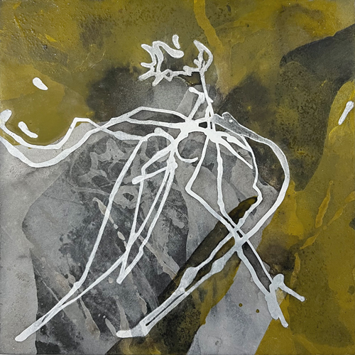 Gestern und heute sind drei kleine Studien aus den Skizzen der gefundenen, zersetzten Tomatenrispe entstanden. Das Resultat: Die gezeichneten Liniengebilde wirken nun wie wilde Tänzer – weg vom ursprünglich filigranen und vergänglichen organischen Fund, hin zu einem neuen kraftvollen Ausdruck.