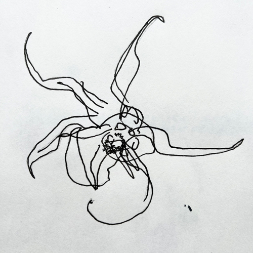 Der gestrige Fund des Tages hat mich heute nicht losgelassen. Beim genaueren Hinschauen hat mich die filigrane Linienführung zum Skizzieren animiert. Die Augen immer beim Objekt, zeichnet die Hand sozusagen blind die erkannten Linien. Nicht das Abbild war das Ziel sondern die Suche nach dem Charakter des Objekts.