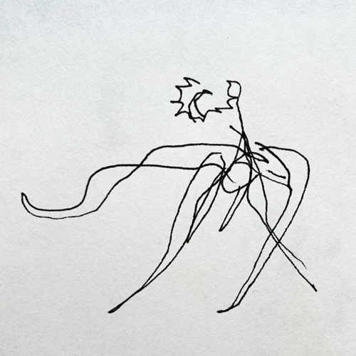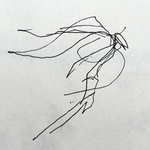 Herausgekommen sind eine Menge Zeichnungen: Liniengebilde, in denen sich teils Figuren oder andere Wesen erkennen lassen. Oder sie zeigen einfach nur, wie trotz Ungenauigkeit, das Wesen der Rispe sichtbar wird.