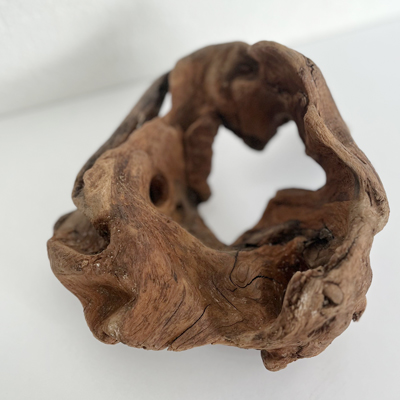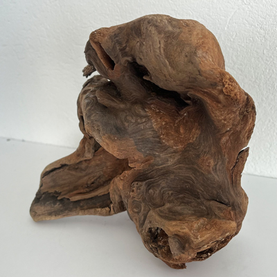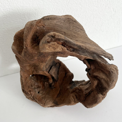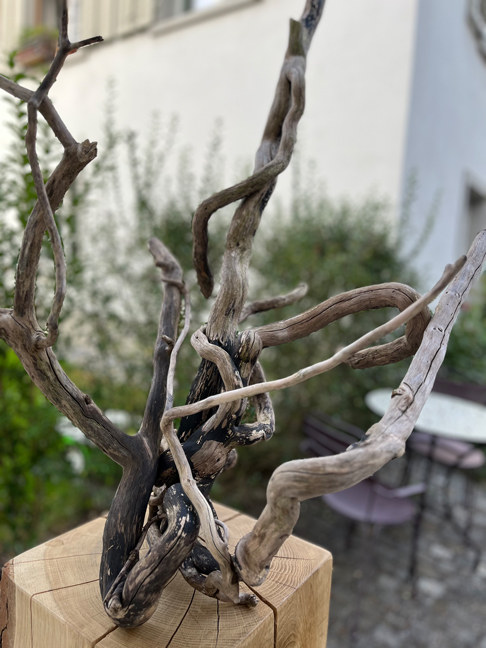 Diese spezielle Wurzel hat auch eine spezielle Geschichte. Mit der ganzen Familie mit ÖV und Velo unterwegs fand ich dieses Schwemmholz am Ufer des Bielersees. Und dieses Fundstück MUSSTE unbedingt mit nach Hause. Trotz vielem Gepäck, überfülltem Zug und einer langen Heimreise fand dieses spezielle Stück den Weg nach Bremgarten. Ihm gebührt besondere Ehre, es thront auf einem Sockel vor meinem Atelier.