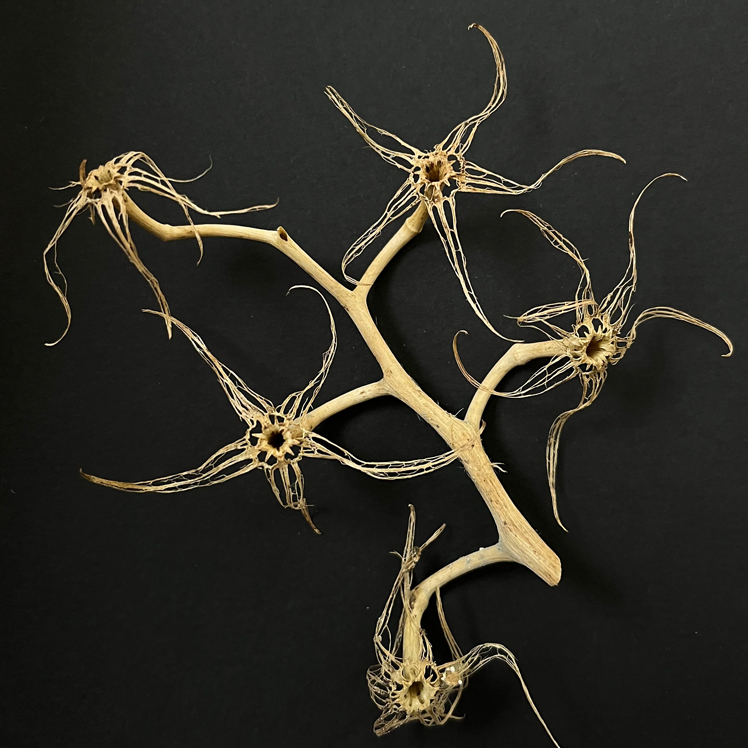 Gefunden an der Reuss, unscheinbar eingehüllt in Schmutz und Erde. Erst beim Putzen und Herauslösen von sämtlichem organischen Material aus allen Ritzen kam dieses faszinierende Skelett eines Mammutbaumzapfens hervor. Hart wie Stein, mit einer wunderbaren Struktur – Inspiration pur!